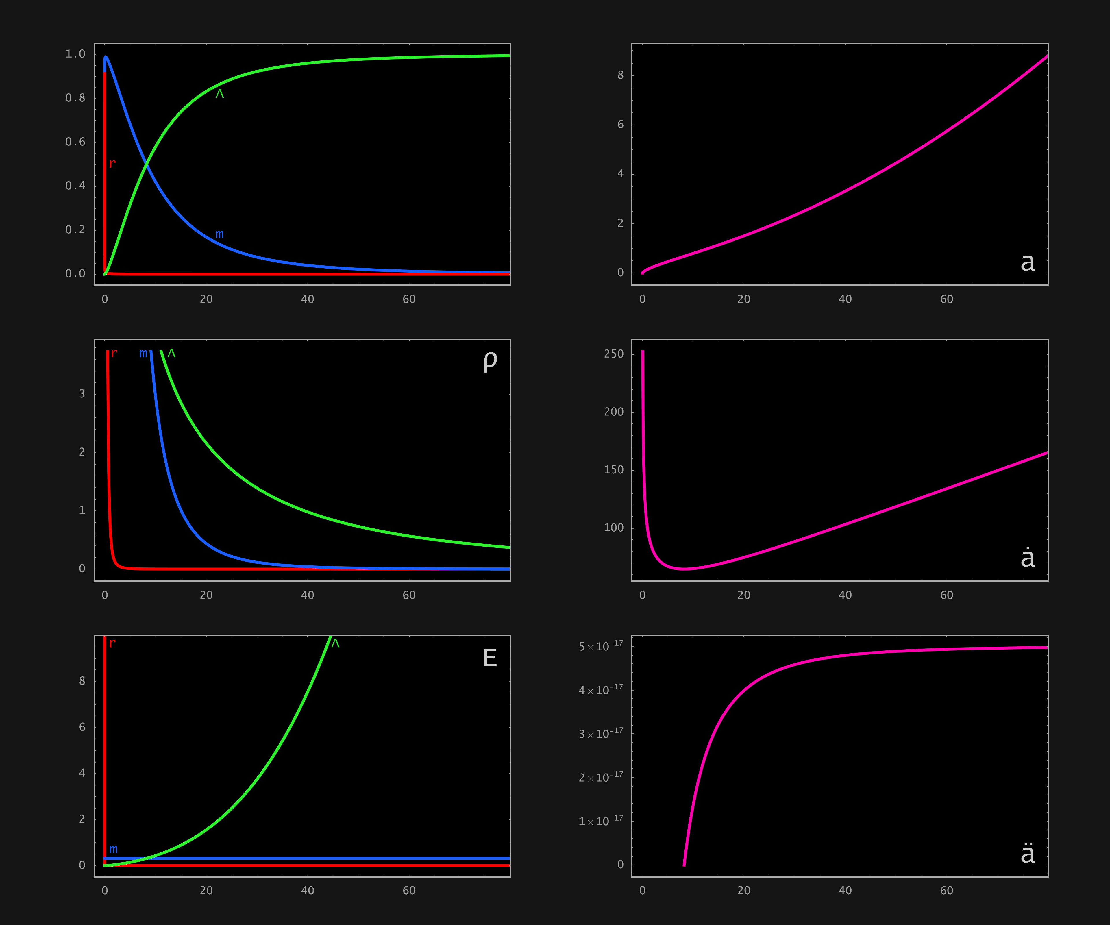 Initial parameters: a=1, H0=67.150, Ωr=9.2136e-5, Ωm=0.315, ΩΛ=1-Ωr-Ωm